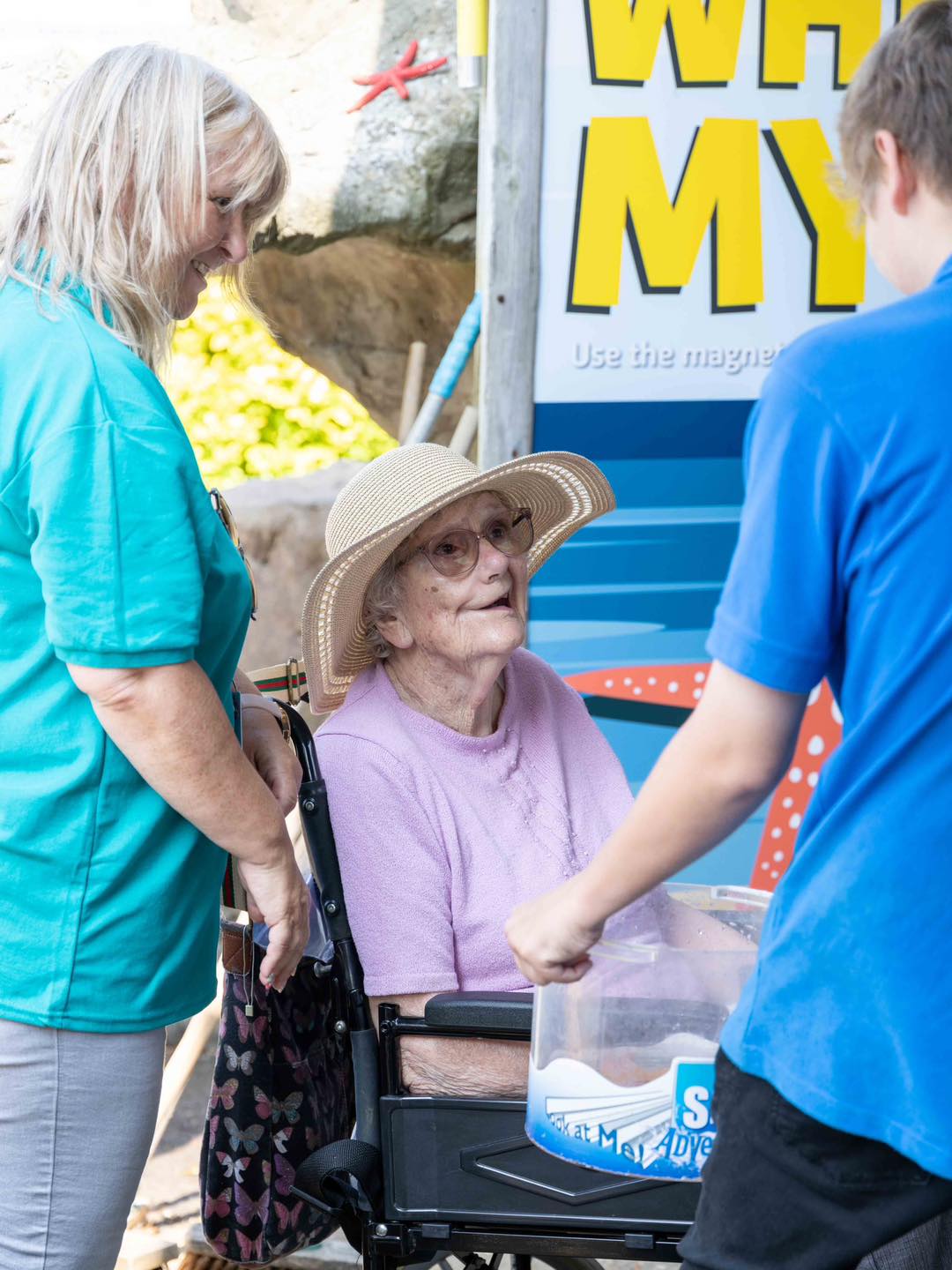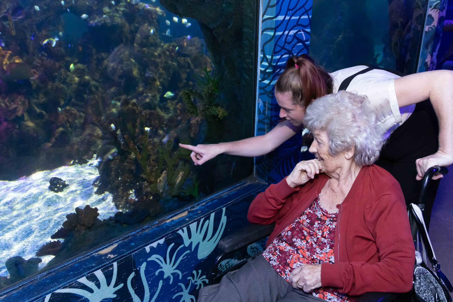 Our residents started the day by enjoying beautiful fresh air as we walked to the Weymouth Sea Life Centre – it was so nice to enjoy the sun shining down on us as we left the home. And then we (staff, residents, and family members) lined up to go inside, ready and eager to have a day to remember.
