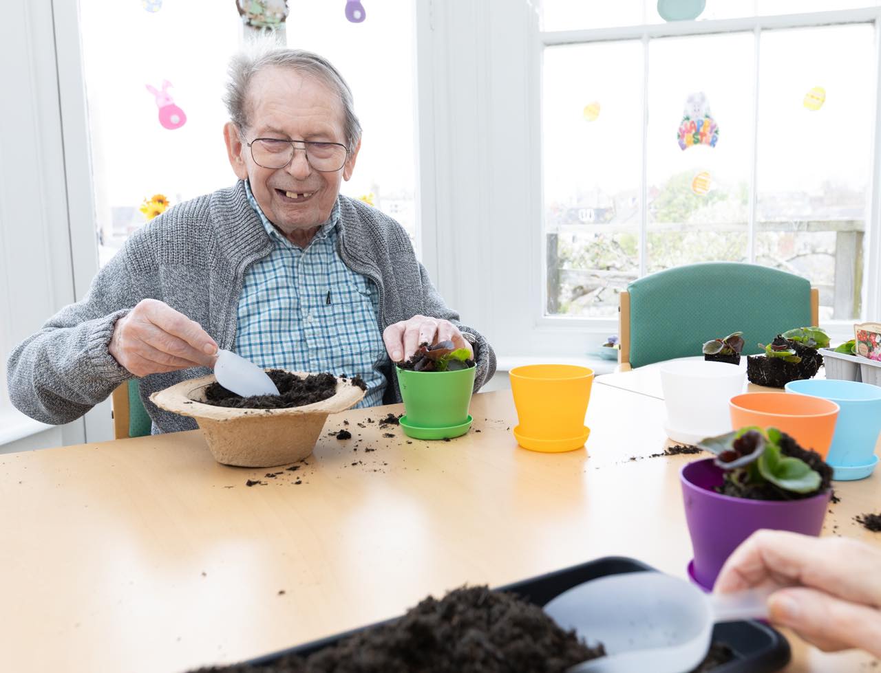Friary Care residents have had such a fun-packed Easter this year and this all started with our eggs-travaganza decorations. Our amazing residents have been making Easter bonnets,baking and decorating lovely Easter cakes, whilst also putting together some eggs-cellent Easter plant boxes, and stretching their artistic muscles with some eggs-tremely lovely paintings.