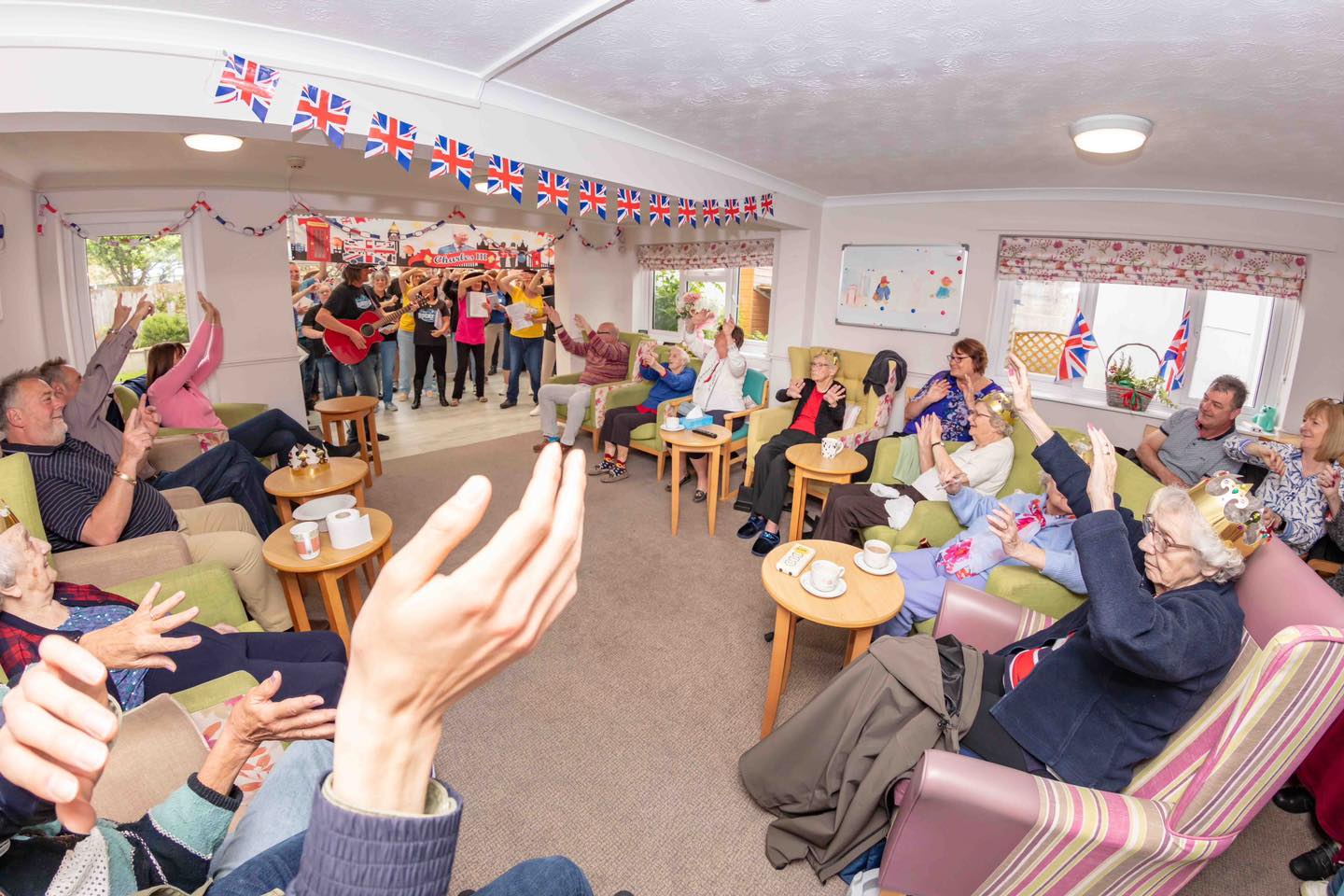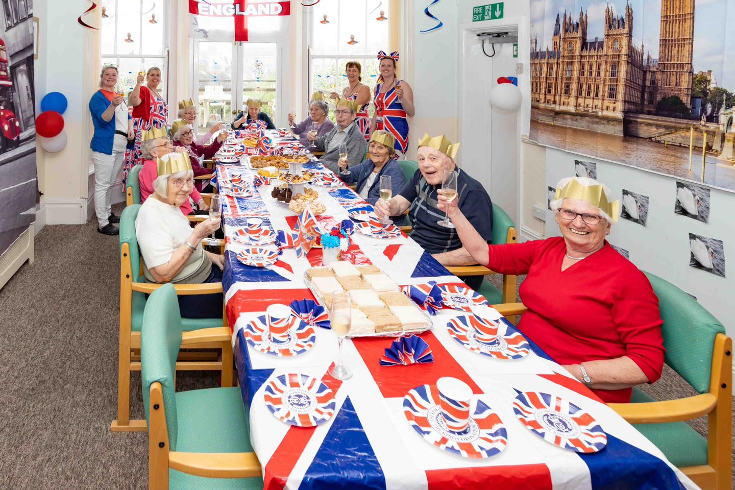 Everything has started with decorating the homes with all things royal. This has involved adorning the homes with residents’ arts and crafts (with lots of crowns, carriages, and even Paddington Bear!), posters of King Charles, and various wall posters of famous spots of London. Plus the residents and all of the staff have dressed for the occasion with a patriotic red, white, and royal blue! All in all, we really have brought London to Weymouth!