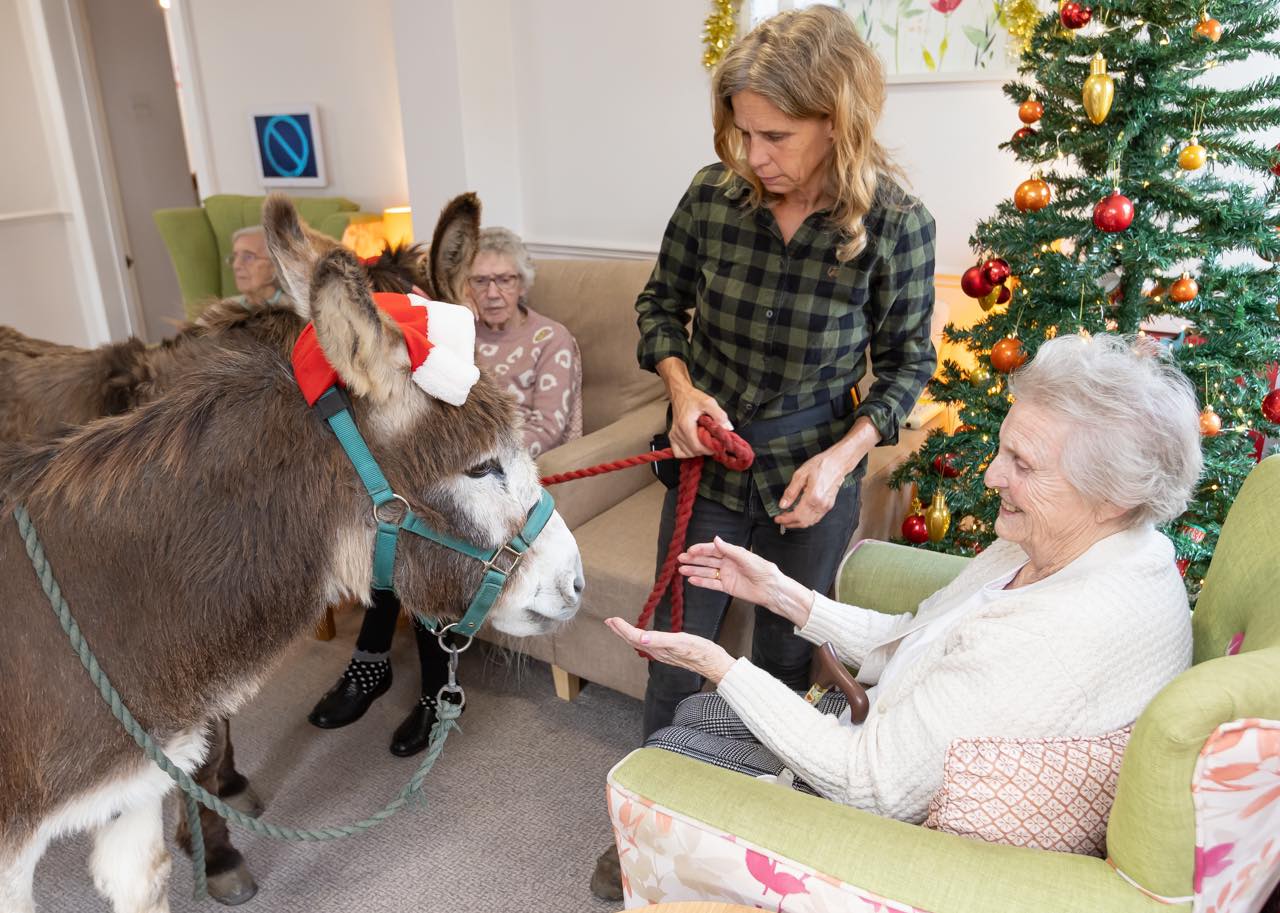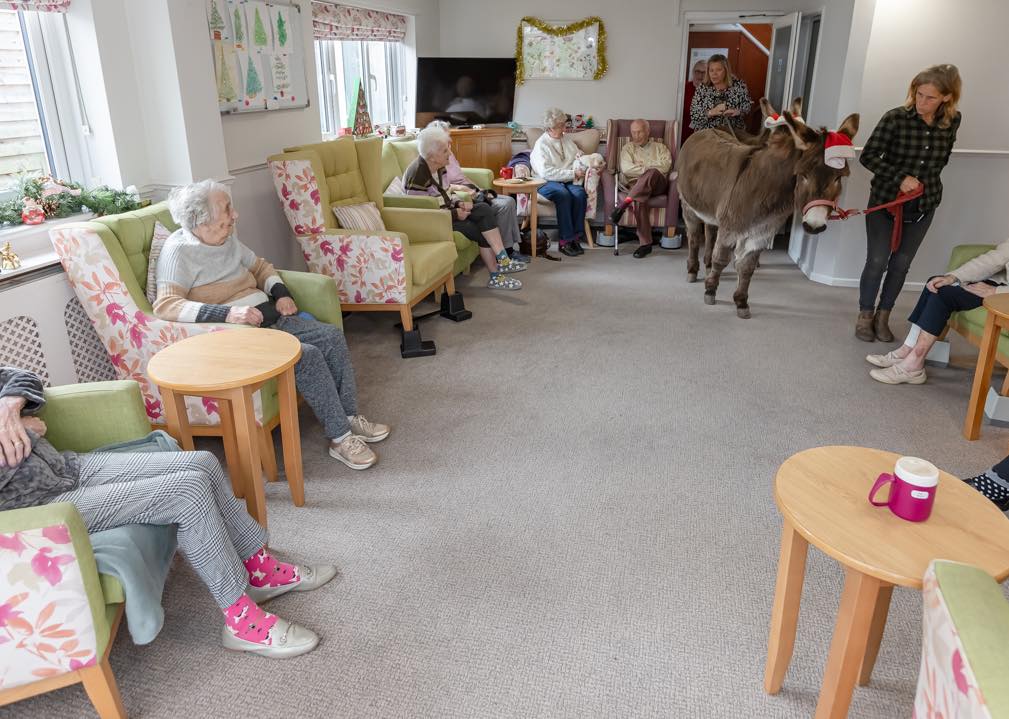 We kicked off the new year at Kingsley Court with a visit from Mel and the beautiful, award winning Westhill donkeys. We all enjoyed a super morning with our furry visitors, Annie and Dainty, who spent their time having cuddles with the residents and staff and munching on carrots from the kitchen.